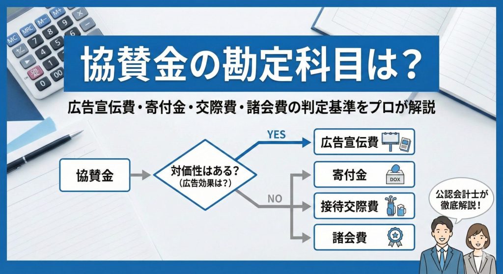 協賛金を支払った際の勘定科目は「広告宣伝費」「寄付金」「交際費」「諸会費」のどれ?公認会計士が、対価性の有無や税務調査で狙われるポイント、消費税の扱いを徹底解説。正しい仕訳で節税とリスク回避を両立しましょう。 -